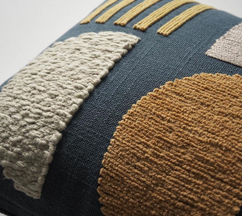 Κεντημένη βαμβακερή, ανάγλυφη μαξιλαροθήκη με ακαθόριστα γεωμετρικά μοτίβα.