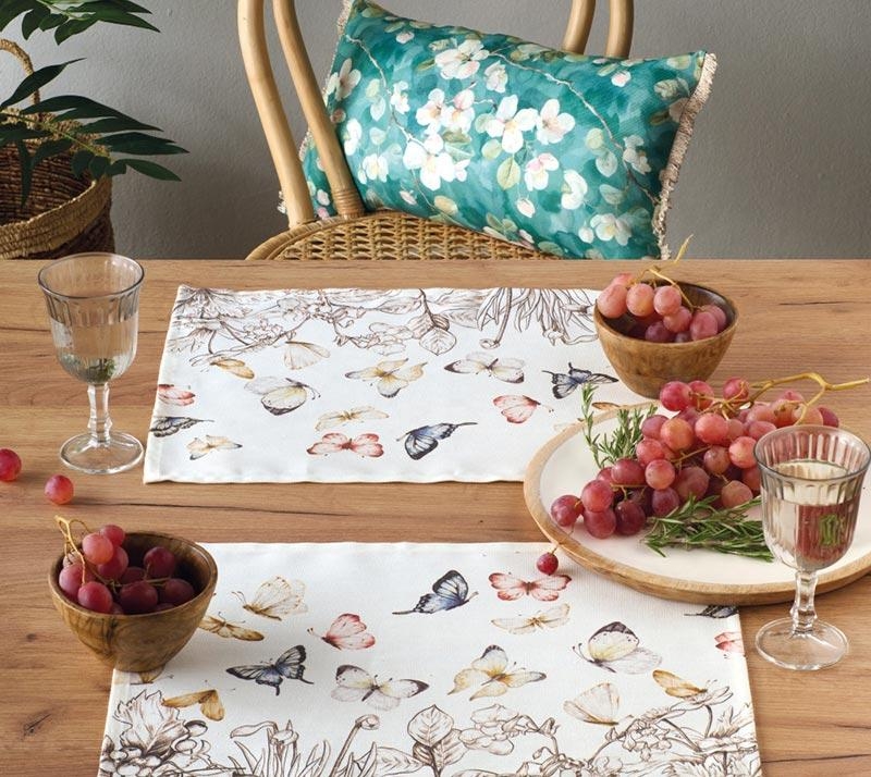 Παράδοση 3 έως 6 εργάσιμες ημέρεςΣουπλά Liblika της Kentia σε σετ τεσσάρων τεμαχίων και διάσταση 33x45. Με βαμβακερό ύφασμα και διακοσμημένα με φλοράλ μοτίβα θα προστατέψουν καθημερινά το τραπέζι σας και το αγαπημένο σας τραπεζομάντηλο.
