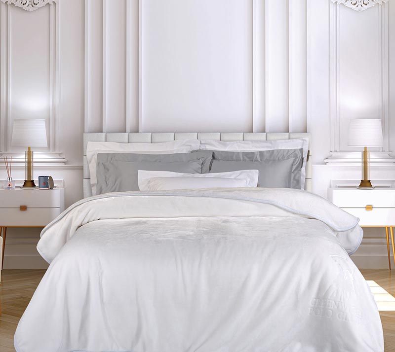 Κουβέρτα υπέρδιπλη βελουτέ 3470 του brand Greenwich Polo Club σε λευκό χρώμα και με κεντημένο το λογοτύπο. Απαλή στην αφή και ιδιαίτερα ζεστή κουβέρτα που θα σας κρατάει συντροφιά πολλές χειμωνιάτικες νύχτες.