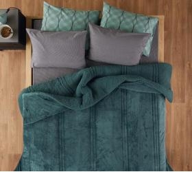 Κουβερτoπάπλωμα ημίδιπλο Notturno 0224 Kentia σε πετρόλ χρώμα από ύφασμα βελούδο mink εξωτερικά και εσωτερικά βάτα πολυέστερ για extra ζέστη. Από την αντίθετη πλευρά έχει γούνα sherpa στον ίδιο χρωματισμό. Πολύ μαλακό και χουχουλιάρικο θα αγκαλιάσει ζεστά τα πιο γλυκά σας όνειρα.