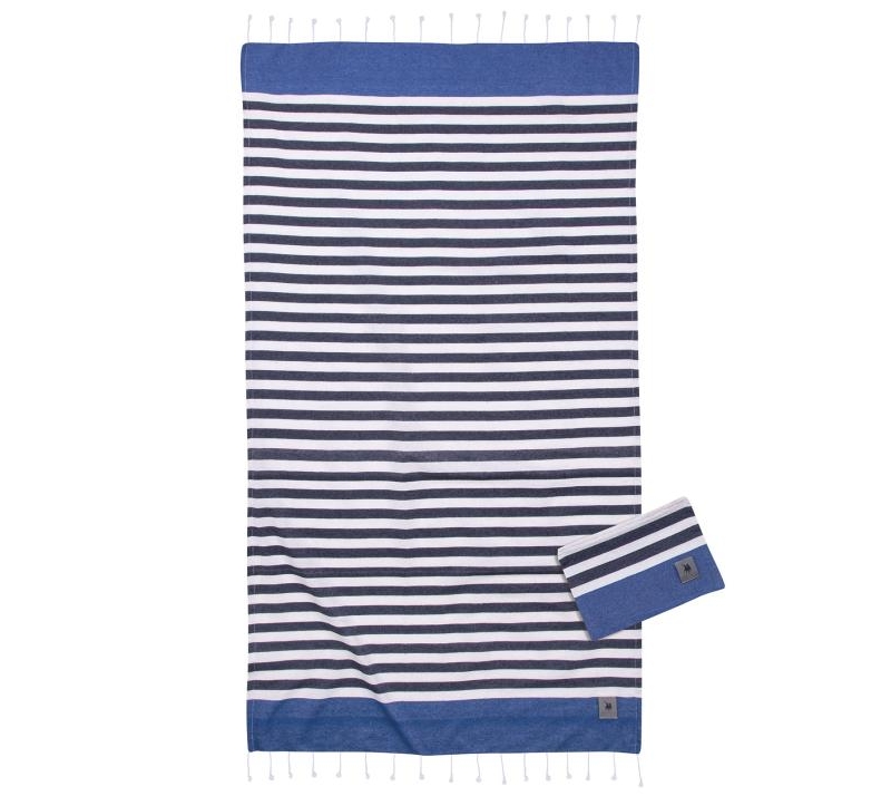 Παρεό θαλάσσης 3828 της Greenwich Polo Club με ριγέ μοτίβο σε μαύρο με μπλέ χρώμα και τελείωμα με κρόσσια. Η συσκευασία περιέχει και τσαντάκι μεταφοράς στο ίδιο σχέδιο. Επιλέξτε πετσέτες θαλάσσης Greenwich Polo Club για τις θαλασσινές σας εξορμήσεις.