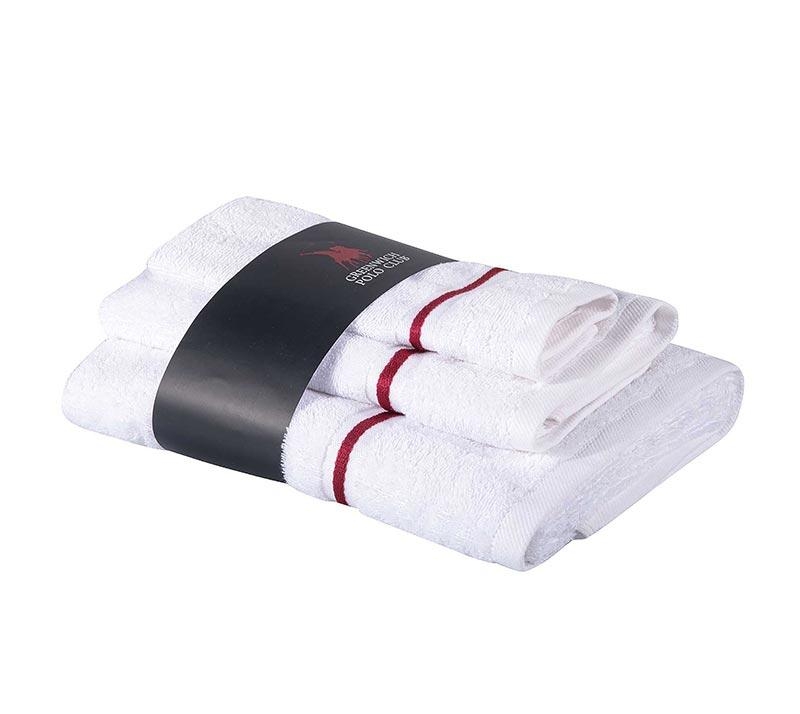 Σετ πετσέτες Greenwich Polo Club με διακοσμητική κόκκινη ρίγα. Είναι ιδιαίτερα απαλές, απορροφητικές και ανθεκτικές, ενώ τα χρώματα που χρησιμοποιούνται είναι ανεξίτηλα και υποαλλεργικά. Το σετ αποτελείται από 3 πετσέτες σε διαστάσεις 30x50, 50x90, 70x140. Επιλέξτε Greenwich Polo Club για να απολαύσετε ποιότητα, στυλ και πολυτέλεια.