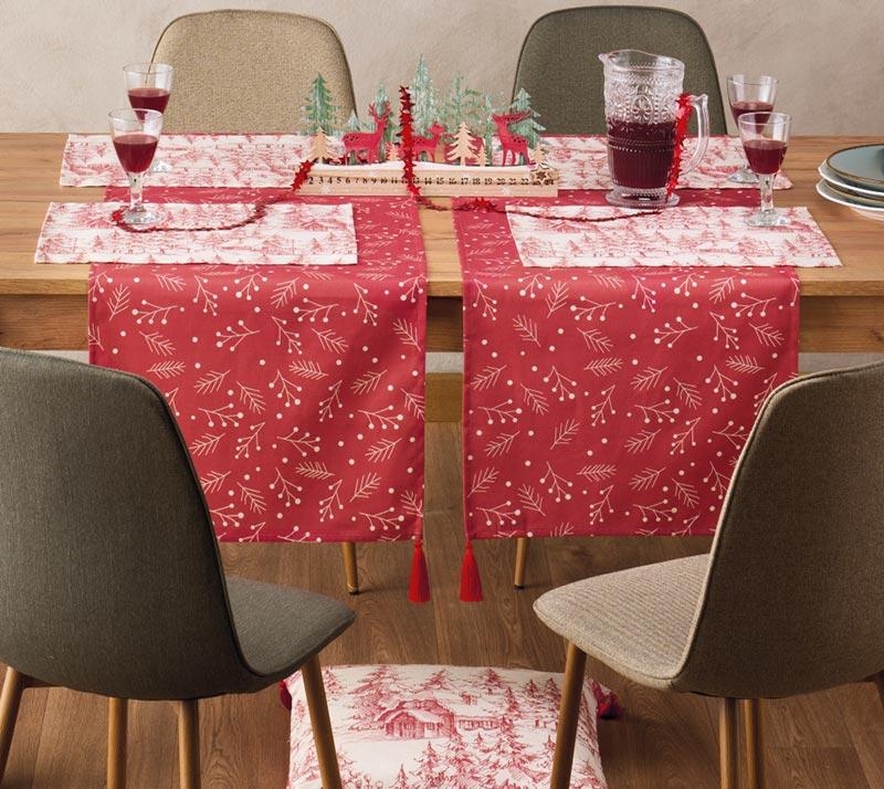 Παράδοση 2 έως 4 εργάσιμες ημέρεςΤο Χριστουγεννιάτικο ράνερ Snow 2419 με τυπωμένο σχέδιο γιορτινές παραστάσεις πάνω σε κόκκινο φόντο θα σας βοηθήσει να ολοκληρώσετε τη διακόσμηση του χώρο σας. Διακοσμήστε το χώρο της κουζίνας ή της τραπεζαρίας με ένα Χριστουγεννιάτικο ράνερ Kentia.